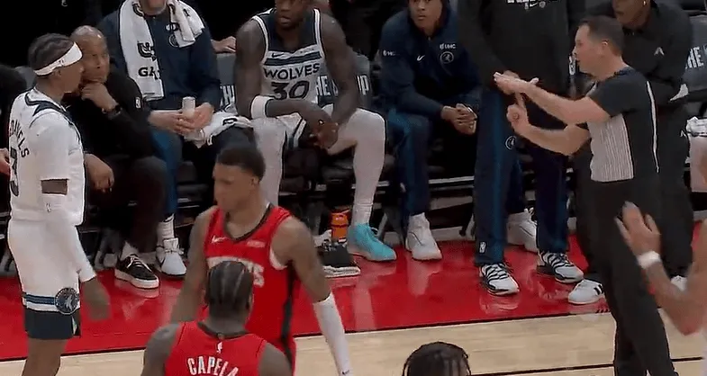 第一节比赛,贾巴里-史密斯抱怨裁判吃T,火箭暂时落后森林狼9分。
