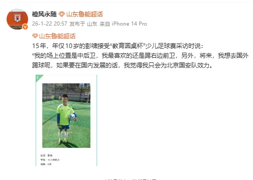 PG电子爆分技巧-泰山博主晒出彭啸10岁照片,彭啸曾说想留洋,在国内就为国安效力